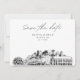 Modern Seattle black and white save the date invitation. The front showcases a stunning sketch, setting the perfect tone for your wedding day. Add your own photo to the back and customise the text to make it your own. Enter the Zazzle design tool for additional design customisations.
