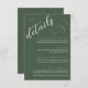 Elegant Slant Script Dark Green Wedding Details Enclosure Card