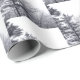 Make your gifts stand out in elegant wrapping paper featuring a black and white photograph of snow-covered trees in a half-drop repeating pattern. The treetops form a strong diagonal with the tallest tree starting at the upper left corner of the image and the shortest tree at the bottom third of the right edge. The two trees on the left are evergreens while the rest are leafless deciduous trees; all are covered with snow. The sky above them is white. Perfect for Christmas and other holidays and occasions.