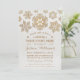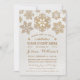 Glittering gold lace style snowflakes with a frosty winter ice white background. Great for parties in the winter months. Great for Formal event, engagement party, anniversaries, birthday party, cocktail party, holiday party, retirements, weddings, corporate event, new years eve party, black tie event, gala, corporate fundraiser, charity event, or any special event. Original Illustration by pj_design. PLEASE NOTE: All products on Zazzle have flat printed images - not real sequins or glitter.