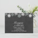 An elegant snowflake birthday invitation in silver, black, and white