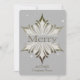 Stylish flat style Christmas greeting card done in a light grey, with a glittery looking metallic like snowflake, in the middle. Bronze looking glitter graphic text, running through the middle of the snowflake, reads Merry. Personalise the text, on the bottom of the card to suit your company needs.