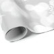 Elegant pattern of white snowflakes and sparkles on a light grey background.
