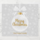 An elegant white Christmas tree ornament on a light gray background filled with snowflakes, these sparkling wine bottle labels are fun for personalized gifts for the holidays. CHANGE to any wording. Use the Customize Further feature to add or delete text, align text, change the font, font colors and layout. MATCHING party invitations, stickers, holiday photo cards and more in our store --> http://bit.ly/2LCyCsl <--