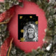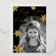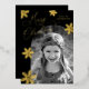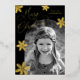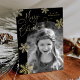 Elegant holiday photo card featuring your vertical photo framed by a black arch and gold foil snowflakes. "Merry Christmas" is displayed in a gold foil calligraphy script. Personalise the front of the gold foil Christmas card by adding your name. The card reverses to display an additional photo, the year, and your custom message in white lettering on a black background.