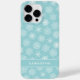 Create a unique personalised Christmas phone case with an elegant teal blue and white snowflakes pattern and a template to type your name. It's a cute idea for winter holidays season.