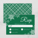 Elegant Snowflakes Plaid Dark Green Wedding RSVP Card