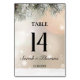 Elegant and modern Christmas table number with fir and snow in white, silver and pink shades. You can change the names, date and image.