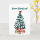 Send warm holiday wishes with this beautifully designed Christmas postcard featuring a classic snow-covered Christmas tree adorned with a red bow and surrounded by festive wrapped gifts. Perfect for spreading joy and cheer this holiday season, this Christmas card blends elegant watercolor artistry with timeless holiday charm. Personalise it with a custom text at the top and choose a background colour.