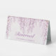 This elegant wedding reserved table tent card features a charming botanical design, perfect for organizing your ceremony or reception seating with style. Cascading watercolor wisteria and delicate wildflowers in soft lavender and blush tones create a romantic frame at the top, ensuring your VIP guests feel truly special.