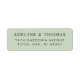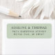Elegant wedding return address labels feature custom black text and a soft green background colour that can be customised.
