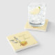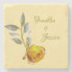 This oval design with a soft pink and yellow peace rose and pale green and gold watercolor leaves is a modern minimalist wedding theme. These butter yellow coasters with the names of the bride and groom and the peace rose coordinates with a range of wedding stationary and supplies that use the same theme. These stone coasters can be put on the tables during the reception and used as favours for the guests or gifts for the wedding party. They will also fit in the newly weds new home reminding them of their special day. This theme will fit a wedding for someone who wants a floral theme and prefers light roses.
