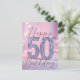 The design features a bold, silver glittering "50" dressed in sparkling dots that glimmer like confetti in the glow of candles. The background? A soft, dreamy pink that feels as warm and inviting as a heartfelt hug. The words "Happy 50th Birthday" flow across the card in an elegant cursive font, a poetic touch that whispers sophistication and charm.