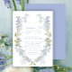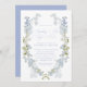 Delicate Floral Artistry: Our design features a stunning wreath composed of delicate delphiniums, sweet peas, and charming forget-me-nots, all rendered in exquisite soft blue watercolors. This floral arrangement captures the serene beauty of nature and symbolises the blossoming of a new chapter in life.