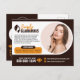 This editable Beauty Salon Postcard Template is perfect for hair stylists, makeup artists, estheticians, and other beauty professionals. The elegant design features a brown background with gold accents and a space for your photo or logo. The back of the card provides ample space to showcase your services and contact information.