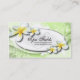 Promote your spa and salon business with this elegant and professional ocean sparkling water green, white, and yellow tropical plumeria floral abstract swirls and sparkling stars and splotches monogram business card. This card is perfect for event planners, spa managers, salons, hair stylists, nail technicians, singers, tanning technicians, cosmetologists, lyricists, florists, wedding planners, wedding dress stores, retail stores, jewelers, jewellery stores, clothing stores, fashion designers, interior designers, and anyone looking for an pretty, elegant, professional look. Copyright 2012 Pam's Designs.