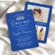 Elegant Sparkles Quinceañera 3 Photo Royal Blue Invitation