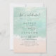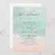 Romantic coastal themed engagement party invitation features beautiful turquoise abstract watercolor sparkling ocean wave and beach background, toped with stylish script and elegant font event details, modern and simple, great for sand beach wedding, tropical destination wedding, coastal ocean themed wedding.