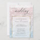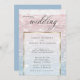 Wedding Invitation | Stunning shimmering sparkly Ocean waters glistening in the setting sun - in pale shades of dusty rose pink and dusty blue - text appears on a sheer white sparkling gold edged frame that shows the design but allows the text to easily be read. Accented with beautiful elegant handwritten calligraphy. Easy to personalise wedding template.