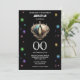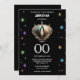 An elegant, chic and stylish golden coloured sparkling wine bottle is surrounded by a golden frame set against a black inlay framed by colourful starbursts. This design is ideal for a milestone birthday party or a business celebrating the number of years they have been in business.