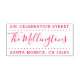 Easily personalise these custom Elegant Split Address Self-Inking Return Address self-inking rubber stamps with your own names and address. To customise these rubber stamps, click on "Personalise this template" and change the text in the boxes provided. Available in 9 different colours and 6 sizes. Please view your design on the monitor as close to actual size as possible to ensure that the text prints at the expected size. For use as a return address stamp most people will require a larger size. These return address self-inking rubber stamps stamp up to 10000 impressions with each cartridge, have a soft touch for secure grip and ink-free fingers and an eco-friendly manufacturing process. No minimum order quantity.