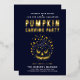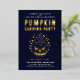 This Halloween-themed invitation beckons friends to a spooky Halloween pumpkin carving party. Featuring bold modern gold foil typography on a dark blue night sky background, and delicate orange leaves, it sets a mysterious and festive tone. The back of the invitation mirrors the same dark blue, maintaining a cohesive design. Completely customisable, the text can be edited to create a personalised invitation for your scary trick-or-treat magical party. Perfect for those who want to celebrate in style, this invitation ensures your event will be a memorable and enchanting gathering.