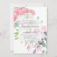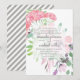 Elegant and modern floral wedding invitation features a background of soft pink watercolor spring flowers. Your wedding details are overlaid on a sheer white element in elegant grey lettering accented with hand lettered calligraphy script. On the back an elegant grey and white diagonal striped pattern. Grey colour can be changed usign customising button.