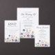 Prety wildflowers decorate the bottom of this colorful spring Save the Date invitation. Watercolor floral borders are perfect for a garden ceremony outdoors while flowers are in bloom. Elegant script dances above a beautiful orange, purple, yellow, and blue botanical meadow. Add your engagement photo on the back.