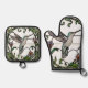 Elegant stain glass art nouveau hummingbird oven mitt & pot holder set