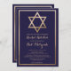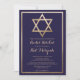 Celebrate your child's special day with our modern and elegant bat mitzvah invitation. The design features a faux printed gold foil Star of David and border, set against a simple navy blue background adorned with ornate cursive typography. This chic, pretty, minimalist, and regal invitation is the perfect choice for commemorating this significant event in a stylish and meaningful way.
