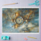 🖤 Steampunk Elegance Clock Tissue. This tissue features a beautifully detailed steampunk clock set against an abstract, richly textured background. The ornate clock face with blue Roman numerals is framed by intricate brass and copper details, complemented by vintage-style lanterns that emit a warm glow. The background, an artistic blend of blues, golds, and grays, creates a sense of depth and movement, adding to the overall industrial elegance of the design. Perfect for decoupage, scrapbooking, and other creative endeavors, this tissue paper brings a unique blend of steampunk sophistication and modern artistry to your projects. Elevate your crafts with this exquisitely detailed and imaginative tissue design.. NOTE 1. The design is not taken into the “bleed area” as this can not be guaranteed to print, hence there is a small border around the design. NOTE 2. Each of my designs is original, boasting high-resolution imagery making it versatile for a range of Zazzle products.