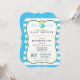 It's a boy! Elegant sky blue and lime green toy stitched helicopter baby shower invite on bright sky blue and white stripes pattern with vintage formal look. Great for boy aircraft, helicopter theme baby showers; perfect for spring showers. Retro bracket shape invitation.