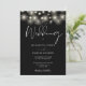 This elegant script black and white wedding invitation, featuring pretty string lights, can be personalized with your information in chic typography. Designed by Thisisnotme©