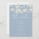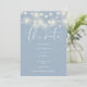 This elegant dusty blue save-the-date invitation, featuring pretty string lights, can be personalized with your information in chic typography with your wedding website QR code and details on the reverse. Designed by Thisisnotme©