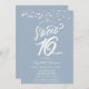 Elegant String Lights Dusty Blue Sweet 16 Invitation