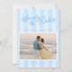 Announce your wedding date with our modern but elegant wedding Save The Date card in an oh-so-pretty shade of pastel blue. This design features preppy stripes in alternating shades of powder blue on the front and back, which lend an elegant, chic touch, while still being fresh and trendy. The design features "Save the Date" written in a classy calligraphy script with a nostalgic, vintage feel and a touch of whimsy. You are sure to wow your loved ones with this unique save the date card!