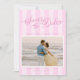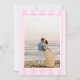 Announce your wedding date with our modern but elegant wedding Save The Date card in an oh-so-pretty shade of pastel pink. This design features preppy stripes in alternating shades of pastel pink on the front and back, which lend an elegant, chic touch, while still being fresh and trendy. The design features "Save the Date" written in a classy calligraphy script with a nostalgic, vintage feel and a touch of whimsy. You are sure to wow your loved ones with this unique save the date card!