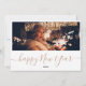 This minimalist and stylish design features three of your favourite photos in a square shape, with a Merry Christmas greeting in elegant calligraphy script above and your name in simple modern typography below in delicate caramel colour. The reverse features a Happy New Year greeting and a 4 4th photo. Capture the essence of December with this delightful and beautifully crafted holiday minimalist picture photo collage greeting card! To customise, click on the ´Personalise´ button.