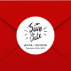 Elegant Stylish Calligraphy Wedding Save the Date Classic Round Sticker