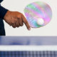 This pretty ping pong paddle design features faux holographic dripping glitter metallic texture and elegant calligraphy font.