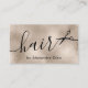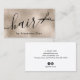 This modern hairstylist business card design features faux copper gold texture, scissors and elegant calligraphy font.