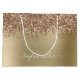 Modern faux copper rose gold glitter, gold metallic gift bag.