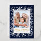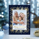 Elegant Stylish Navy Snowflake Family Photo Foil Holiday Card