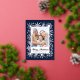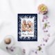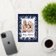This elegant, stylish navy blue snowflake family photo christmas card features a rectangular photo frame surrounded by snowflakes and christmas foliage and sparkles on a navy blue background. This design brings a winter wonderland vibe to your festive season. You can add your own photo, change the name and year and write a message on the back (or leave it blank to hand write a message). The snowflakes on the front page will be in your choice of gold, silver or rose gold foil. See the whole matching collection.