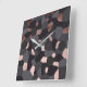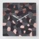 Elegant stylish rose gold grey and black mosaic square wall clock