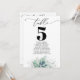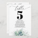 Modern succulents greenery wedding table number seating chart cards with the guest names.