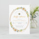 An elegant summer baby shower invitation featuring an oval wreath of daisy flowers, a honey bee, and a watercolor honeycomb pattern on the reverse. The headline, baby shower, is in yellow modern calligraphy font. Personalise with your details. Perfect for a mummy-to-bee, parents-to-bee, sweet as can be, oh baybee theme baby shower.