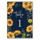 Elegant Summer Fall Sunflower Floral Wedding Table Number