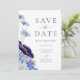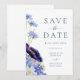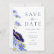 Beautiful elegant hand painted watercolor spring and summer florals with wildflowers in navy blue, cornflower blue, dusty blue, blush blue, purple, green and yellow hues wedding save the date card. Garden meadow flowers including cosmos, cornflowers, poppies and forget me nots with foliage. Easy to use template with modern elegant typography script. Perfect for a unique floral botanical navy blue themed summer or spring wedding. Unique original artwork by artist Catherine Sweetman. Find matching items in the the elegant summer floral blue wedding suite