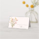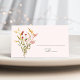 Elegant floral wedding place card featuring a bouquet of watercolor wildflowers and foliage in shades of pink, yellow, red, and green with a blush pink background. The boho wildflower place cards reverse to display your names and wedding date inside of a rectangle frame of wildflowers. The beautiful wildflower wedding place cards are perfect for spring and summer weddings.